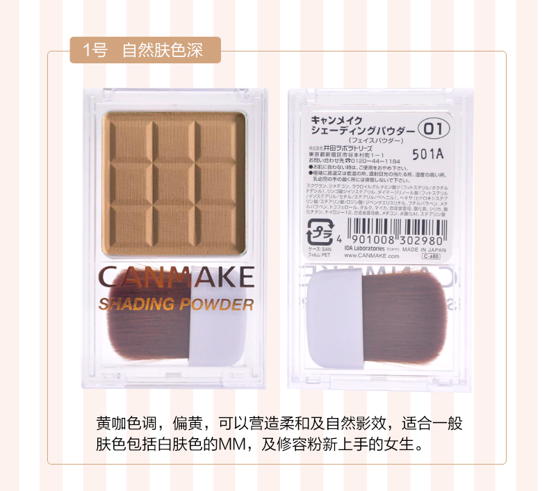 商品名称:CANMAKE/井田 巧克力修容粉阴影粉立体小脸 日本修颜粉正品 01咖黄色