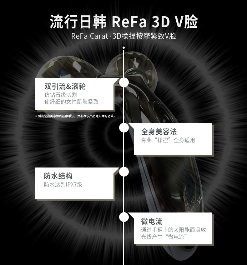 ReFa通过光电板,陶瓷轮产生和人体生物电同样的微电流,通过锗和铂金将微电流充分地传导给皮肤细胞使得皮肤细胞的代谢功能得到恢复,刺激皮肤胶原蛋白的增加。因此即使是短短的十几分钟的ReFa使用,也能看到皮肤有明显的提升效果,在持续使用了一两周之后,就能看到,瘦脸瘦身,皮肤变得亮丽有弹性皱纹减少的显著效果。