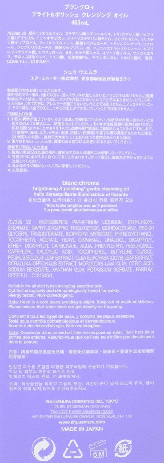 植村秀Shu-uemura火山泥净白洁颜油450ml