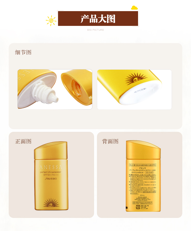 产品名称:Shiseido/资生堂 安耐晒黄金钻级防晒露