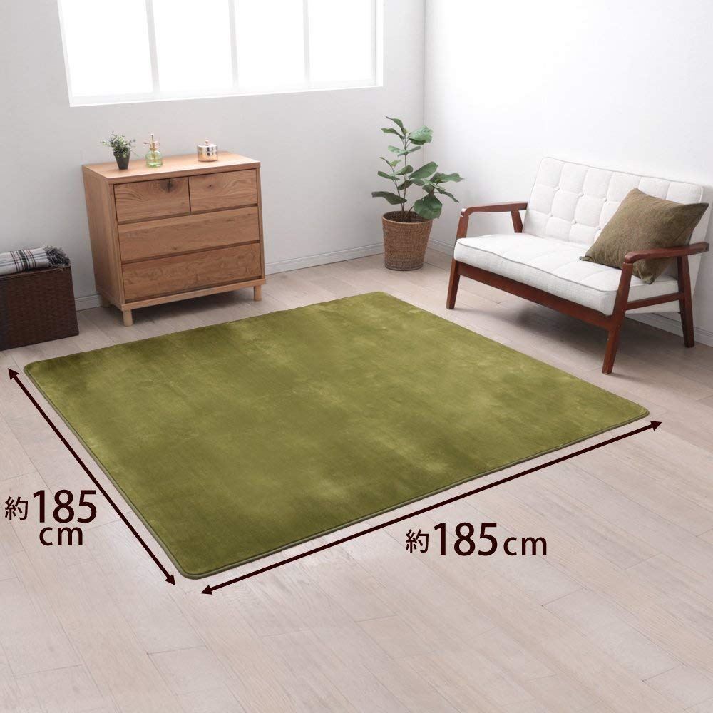 Iris 爱丽思 地毯可水洗法兰绒 绿色 185×185 日本